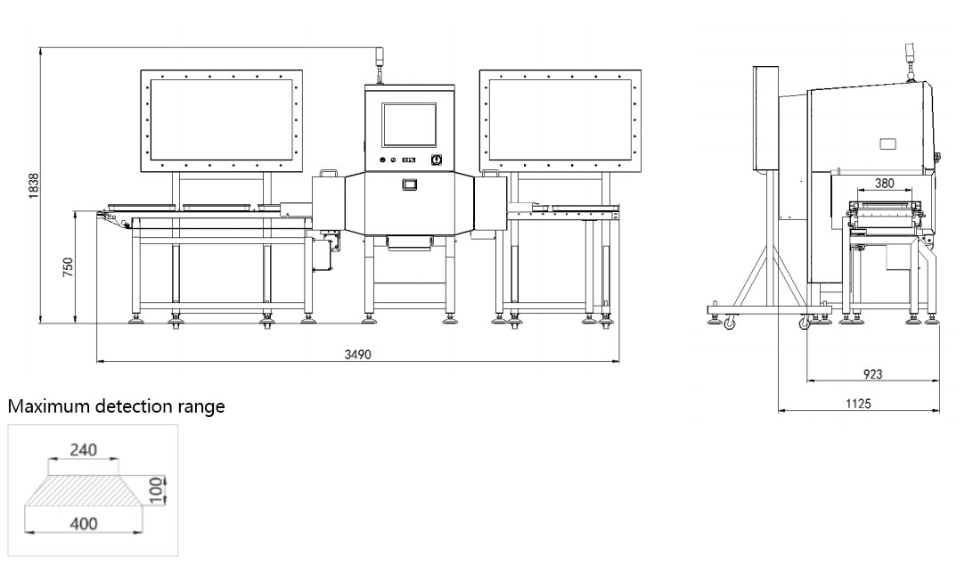 Remarks: The size of the detectable foreign matter is related to the material composition, packaging material, thickness and other parameters in the product. Please refer to the actual product test results.