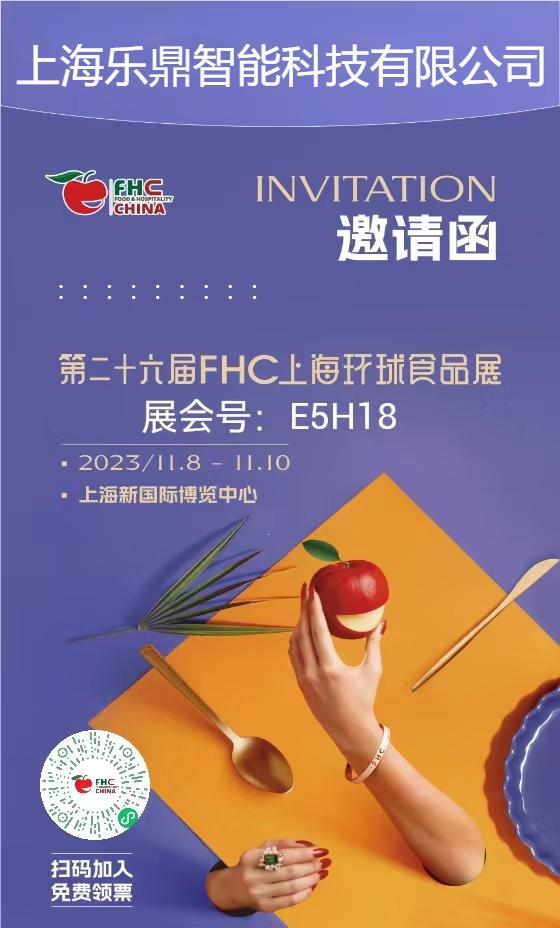 上海樂鼎智能科技有限公司于11.8-11.10日在上海新國際博覽中心參加第二十六屆FHC上海環球食品展,展位號:E5H18, 歡迎新老客戶過來現場參觀和指導!