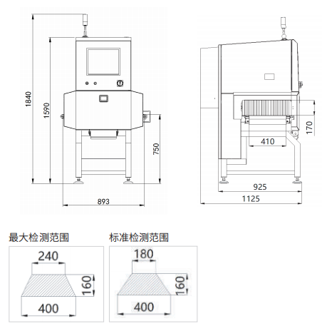 不銹鋼球:0.3mm; 不銹鋼絲:0.2*2mm 陶瓷玻璃球:1.5mm 備注:可檢測的異物尺寸與產品內物質成分、包裝材料、厚度大小等參數有關系,請以實際產品測試結果為準。 |